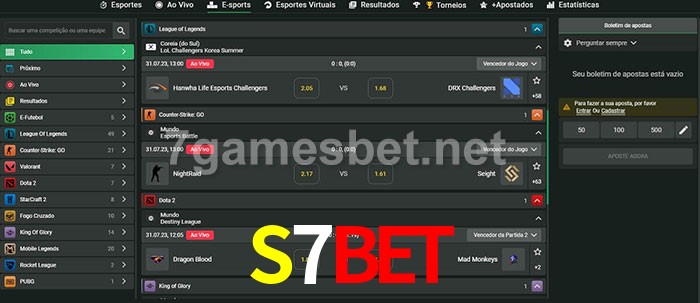 O S7Bet oferece uma grande seleção de opções de apostas em e-sports com probabilidades competitivas